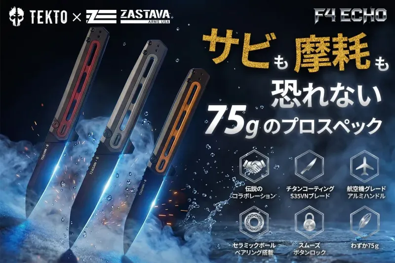 ナイフ愛好家の皆さん、サビや切れ味の維持に悩んでいませんか?「毎日使う相棒なのに、手入れが面倒…」そう感じたことは一度や二度ではないはず。TEKTO KnivesのF4 ECHOは、あなたの悩みを過去にします! S35VN粉末鋼×チタンコーティングが生む驚異の耐食性と圧倒的な刃持ち。私も半信半疑でしたが、このナイフがもたらす「メンテナンスからの解放」はまさに新常識でした。なぜF4 ECHOが究極のEDCナイフなのか、その秘密をこの記事で徹底解説します。