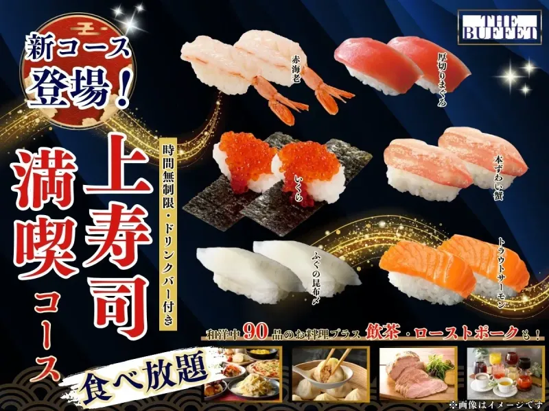 「高級寿司食べ放題」って、本当に満足いくまで楽しめていますか?【THE BUFFET 大丸札幌】に、待望の『上寿司満喫コース』がレギュラー登場!厚切りまぐろやいくら、本ずわい蟹まで、時間無制限で極上寿司と豪華ブッフェを心ゆくまで堪能できる夢のような体験がここに。札幌グルメの新定番、その全貌を徹底解説します!