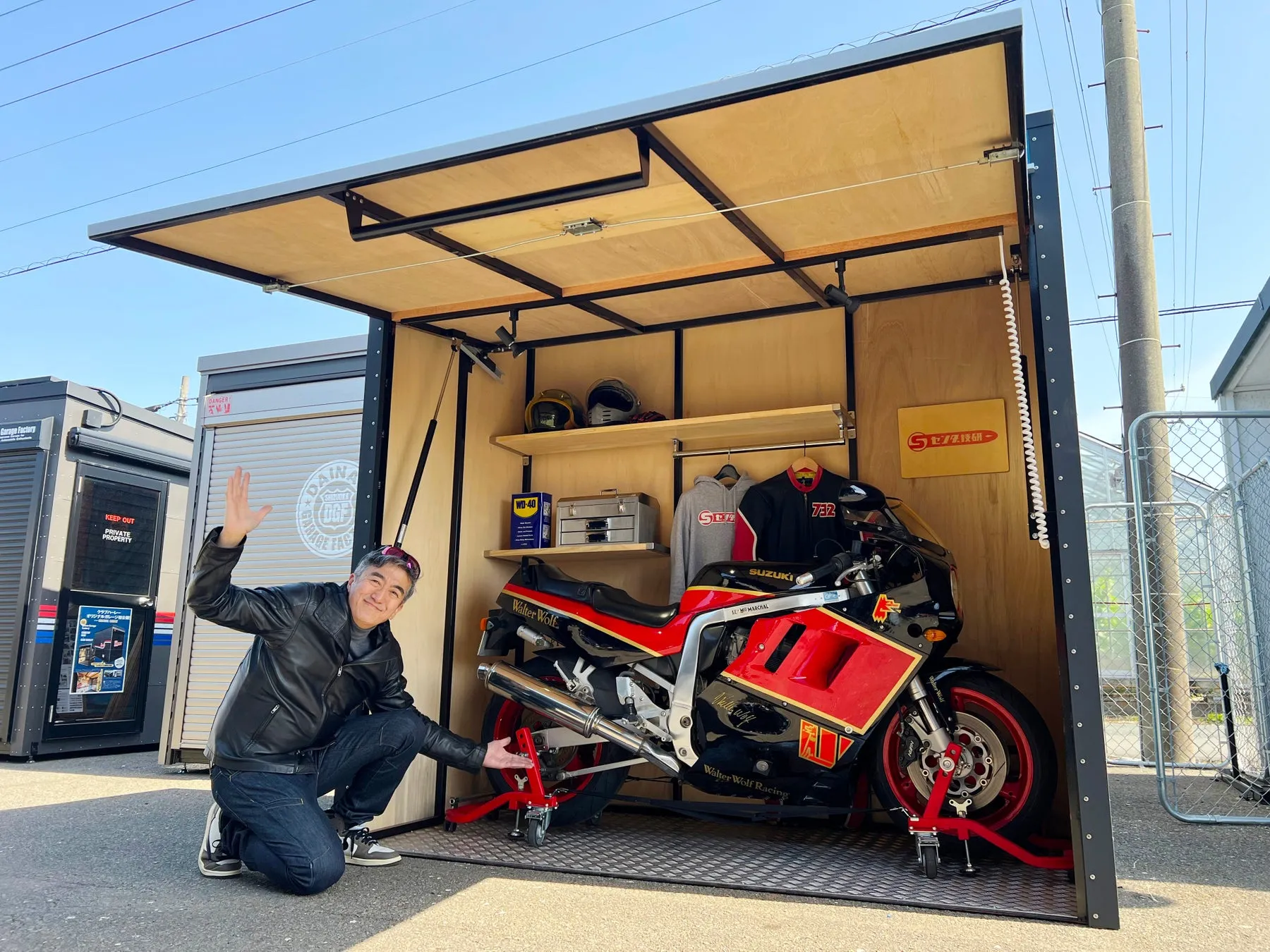 この画期的なマイクロガレージの開発には、日本のモノづくりが凝縮されています。 設計・製作を手掛けるのは、静岡のダイナオガレージファクトリー。2003年から据え置き型バイクガレージを製造し、これまでに800棟以上の実績を持つ信頼のトップブランドです。その熟練の技術と、センダ技研の代表である千田明生氏の元バイクメーカー開発技術者として35年以上のキャリアが融合。まさに「最強のタッグ」と言えるでしょう。