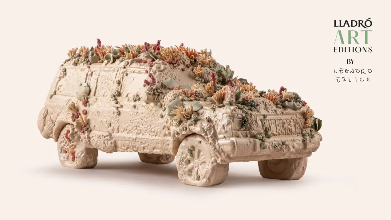 今回の招待会で、私が特に目を奪われたのは、現代アーティスト レアンドロ・エルリッヒがリヤドロのアートエディションに初参加した作品 「Coral Car (Sand)」 です。