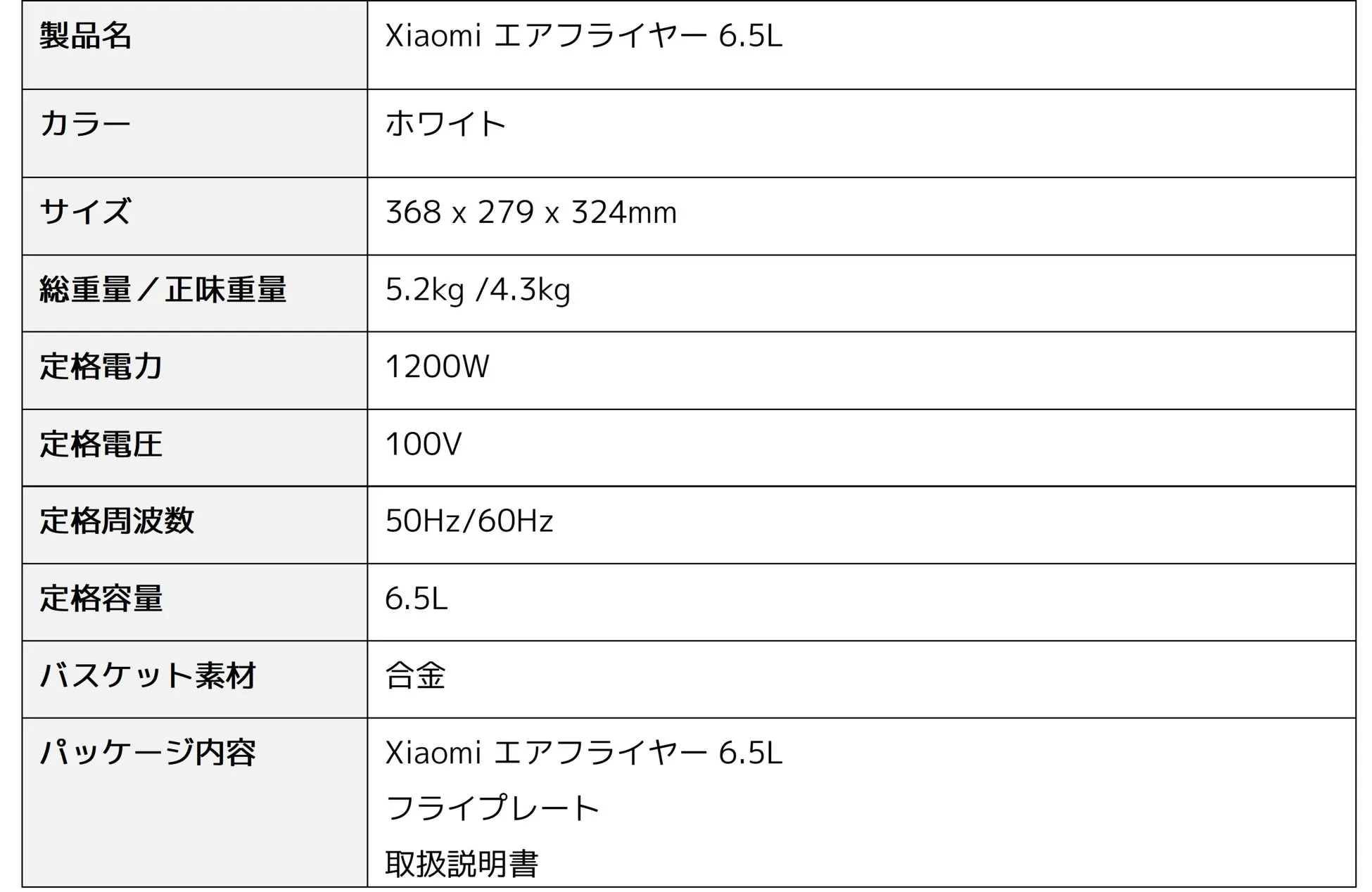Xiaomi エアフライヤー 6.5L がキッチンにやってくる!