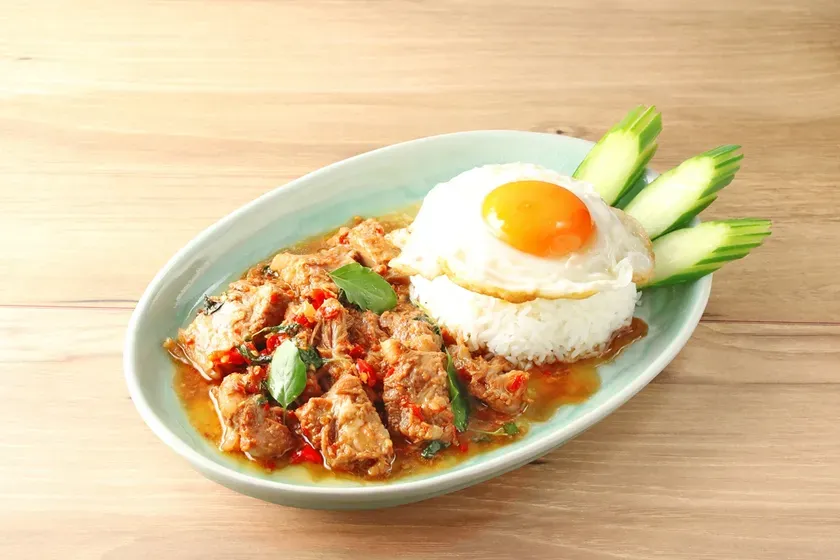 「タイ料理といえばガパオ!」という方も多いのではないでしょうか。この「ガパオ・ガドゥーク・ムー」は、平田牧場三元豚のなんこつを贅沢に使った特別なガパオライスです。