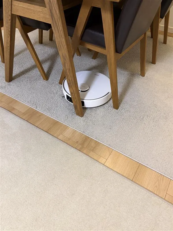 特に驚いたのが、白いカーペットの掃除。これまで掃除機をかけても取りきれなかった髪の毛が、P50 Ultraならごっそり吸い取ってくれます。カーペットのモードに自動で切り替わり、吸引力を最大限に発揮してくれるので、手で触っても毛が残っていない。