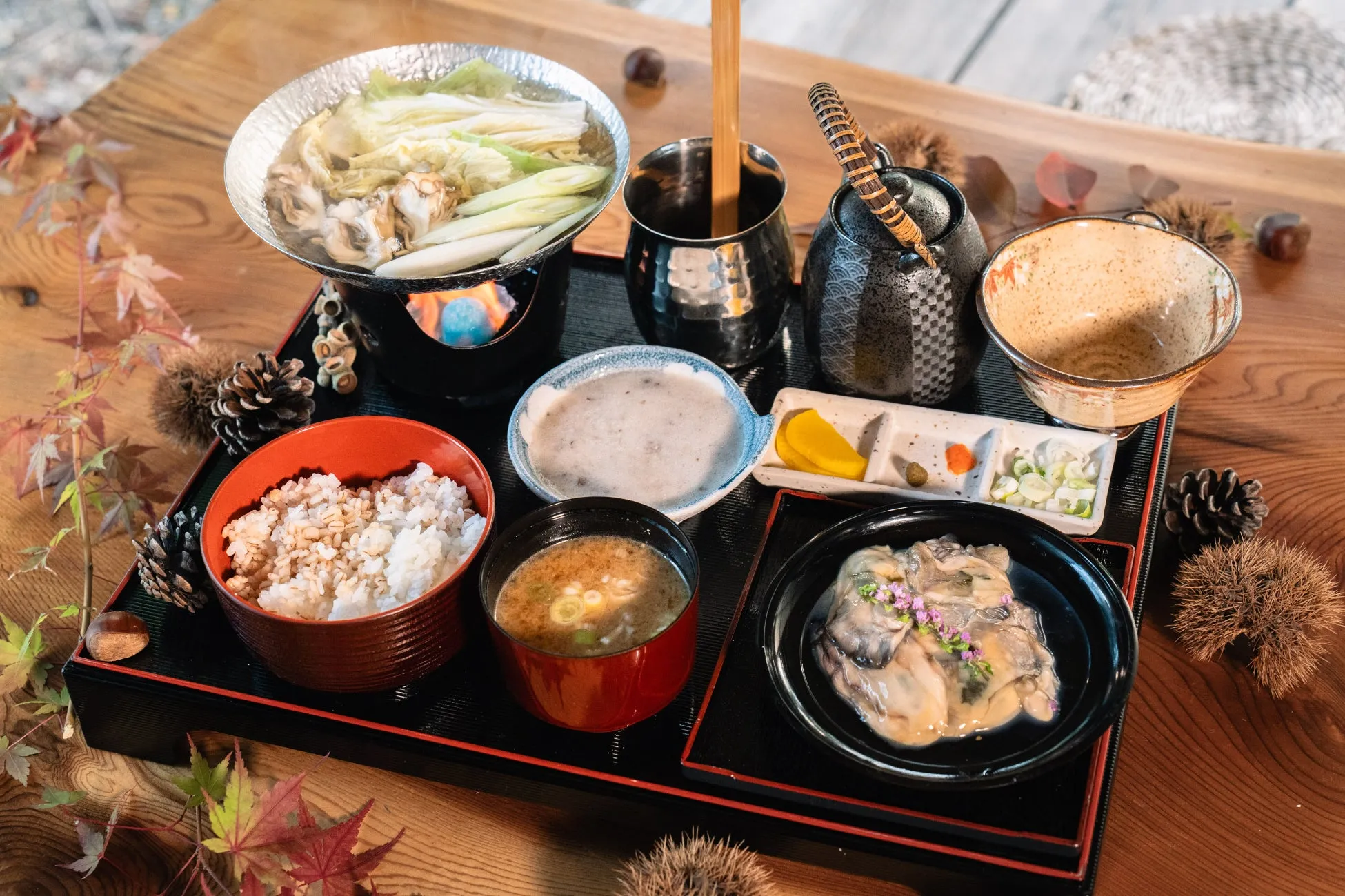 白川郷の歴史ある古民家という唯一無二の空間で、地元食材や旬の味覚を堪能できる「自然薯茶屋」。この冬限定の「牡蠣しゃぶ御膳」と「瀬戸豚しゃぶ御膳」は、滋養たっぷりの自然薯とともに、冷えた体を芯から温めてくれることでしょう。