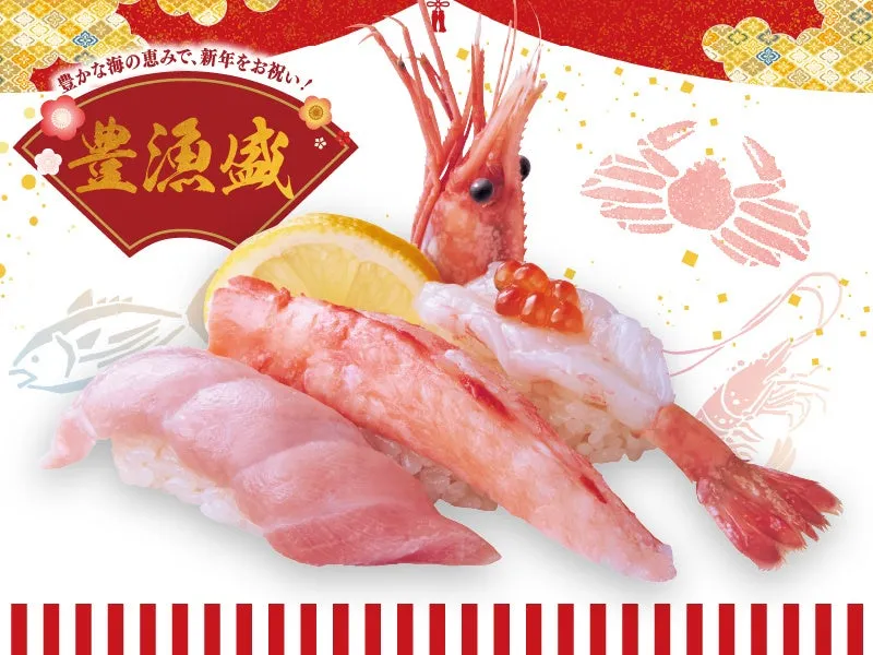 メインの「豊漁盛」の他にも、新年の願いを込めた縁起の良い「3カン」メニューが目白押しです。