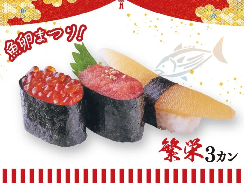家族の健康と幸せを願う「繁栄」は、**いくら軍艦、明太子軍艦、数の子**という魚卵系の組み合わせ。プチプチ、とろり、コリコリと、食感のバリエーションが楽しめるのが魅力です。