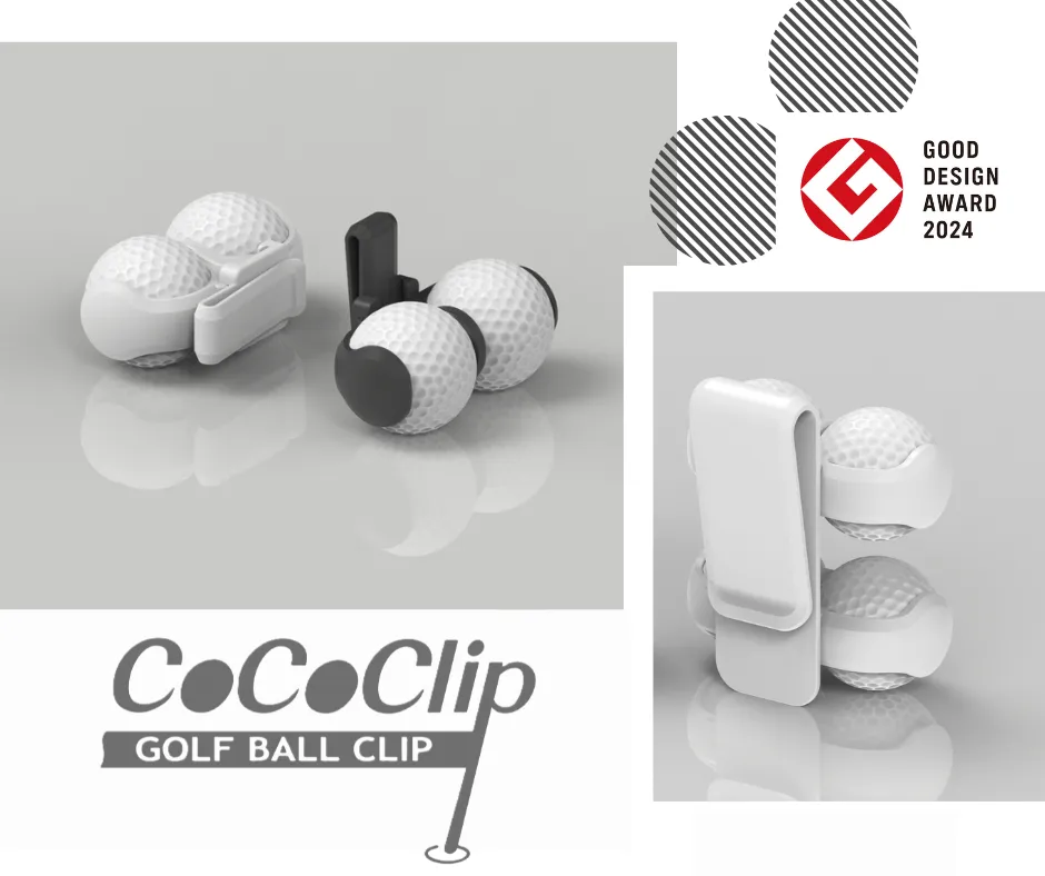 こちらが、タイガートレード株式会社が日本での販売を開始したゴルフボールホルダー 「CoCoClip(ココクリップ)」 です。なんとこの製品、その優れたデザイン性と実用性が評価されて、 2024年度グッドデザイン賞 を受賞しているんです。見た目もスタイリッシュで、持っているだけで気分が上がりそうですね。