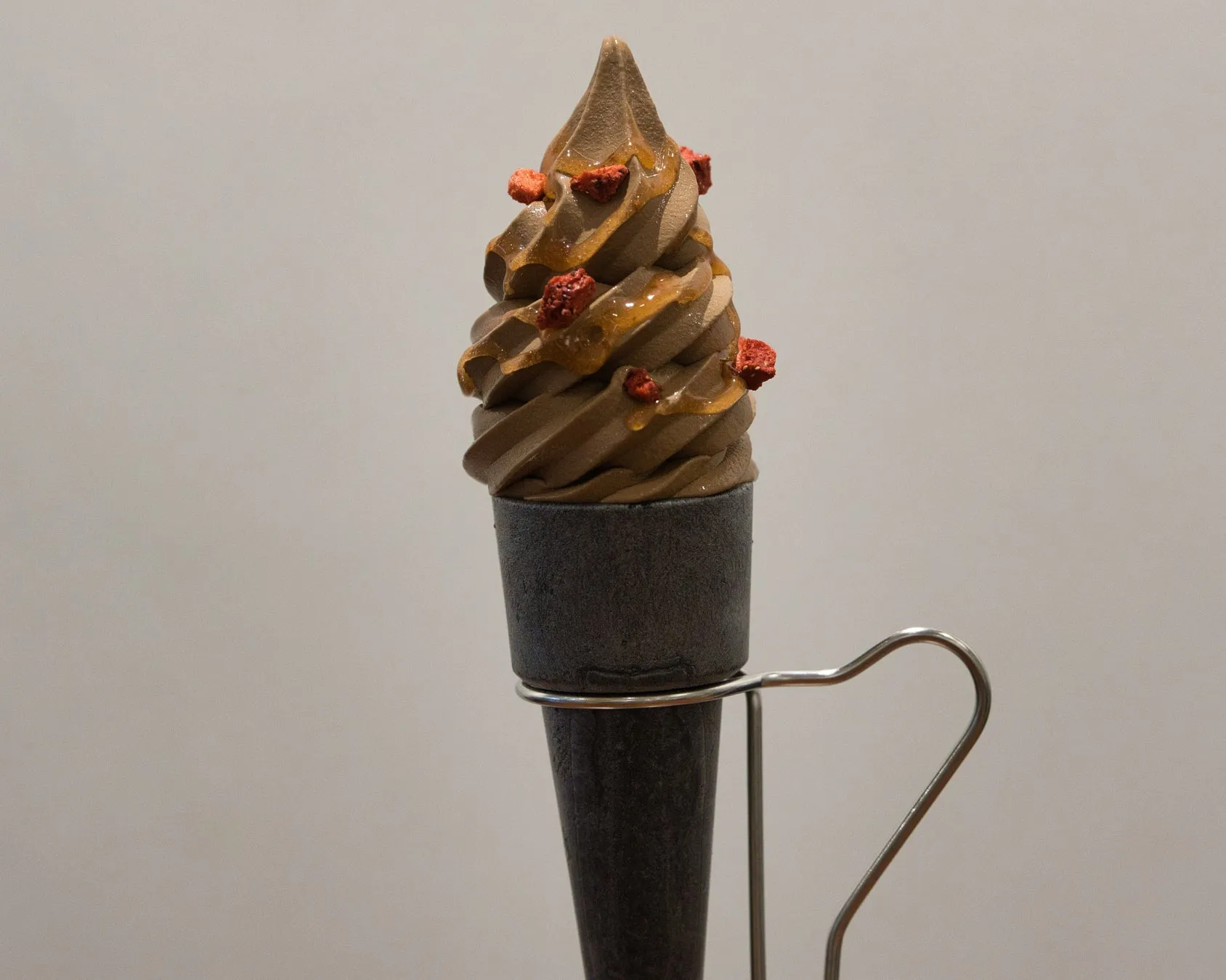 - 特徴:濃厚なチョコレートソフトクリームに、フリーズドライいちごと能登産いちごの甘酸っぱいソースがたっぷり! さらに、竹炭が練り込まれた最中皮コーンの底には、能登大納言小豆のつぶ餡が隠れているという、サプライズ満載の一品です。冷たいソフトクリームとあんこの組み合わせは、意外かもしれませんが、実は最高の相性なんです。一口食べるごとに味の変化が楽しめる、贅沢なスイーツですね。